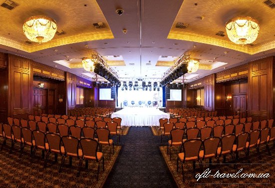 На 2 этаже нашего Отеля расположен целый комплекс для проведения конференций, семинаров, тренингов, презентаций, совещаний и деловых встреч. Софиевский Гранд холл – это многофункциональное помещение с возможными функциями от конференц-зала до зала кинотеатра.