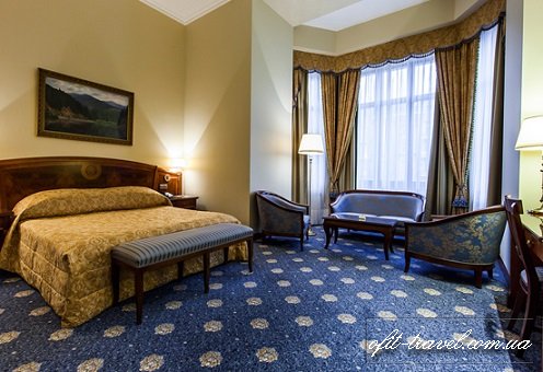 В «Премьер Палас» подается невероятно щедрый завтрак «шведский стол» - с отдельными станциями, посвященными средиземноморской, классической европейской, украинской и азиатской кухням. Ассортимент блюд обновляется каждый день на 30%. Настоящим украшением завтрака является концепция «Премьер Отелей» Fresh Organic Ukrainian - украинские и типично киевские блюда, приготовленные из местных экологически чистых продуктов по уникальным рецептам команды поваров отеля. «Premier Palace Hotel» – один из немногих отелей, которые могут похвастаться богатейшей историей и уникальным местоположением в самом сердце украинской столицы. Гостиница находится на пересечении бульвара Т.Шевченко и улицы Пушкинской. Отель имеет удобный подъезд и просторную парковку, где Вам не придется искать место для стоянки, а также не нужно волноваться о безопасности своего авто. Район имеет прекрасную транспортную развязку, которая позволяет добраться в любую точку в черте города, воспользовавшись общественным транспортом. Номера: всего в гостинице 289 номеров люкс в классическом стиле, в которых есть все, что необходимо современному путешественнику. Разнообразие категорий позволит выбрать именно тот номер, который больше всего отвечает цели Вашего визита, от уютного Стандартного номера до Президентских апартаментов.
